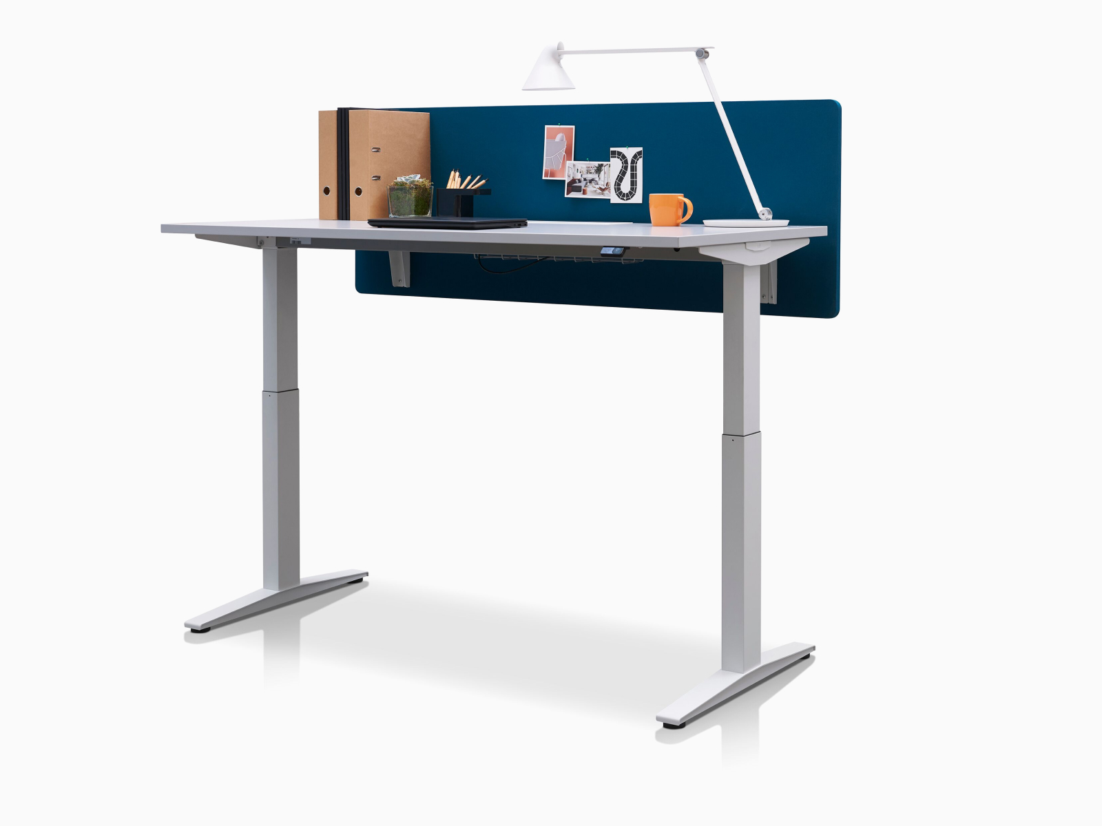 The ratio height adjustable desk enables a smooth transition between sitting and standing.