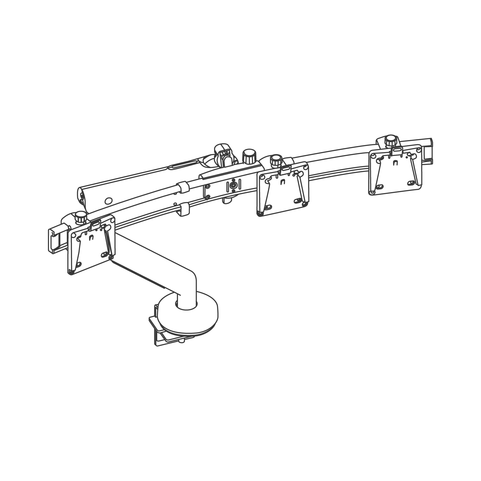 Flo X Triple supports three curved or flat screens of various sizes from a single clamp. A single-tilt mechanism that allows you to position all three screens at once makes adjustment easy and intuitive. Quickly change the screen arrangement from flat to cockpit to continuous curve using the arm’s hand-operated tilt mechanism. Built-in cable management keeps cables neat and out of the way, so cables don’t snag when you adjust the screens.