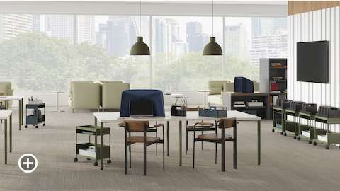 OE1 shapes spaces that strengthen community through informal interactions. Whether it’s lounge settings with soft seating and occasional tables or café settings for gathering and hosting, OE1 provides the soft boundary, power options and sit-to-stand tables to complete the space.