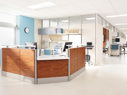 The caregiver's work environment includes medication areas and equipment/supply storage, information retrieval and documentation areas, observation areas, break rooms, and meeting spaces. Our solutions address specific functions and still retain a cohesive look and feel, even as they extend into adjacent patient and family spaces.
