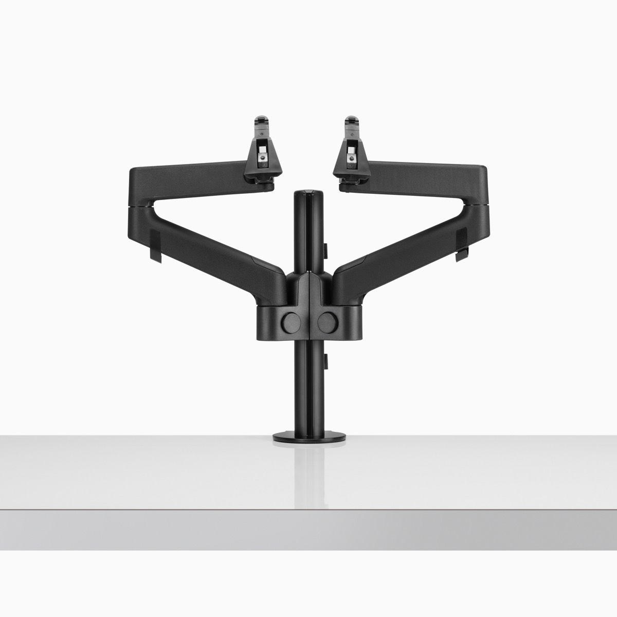 Ajuste vertical: 20.32 cm; Ajuste focal: 45.72 cm; Rango de inclinación: 80⁰ hacia atrás, 10⁰ hacia adelante Peso del monitor: hasta 6.35 kg por soporte