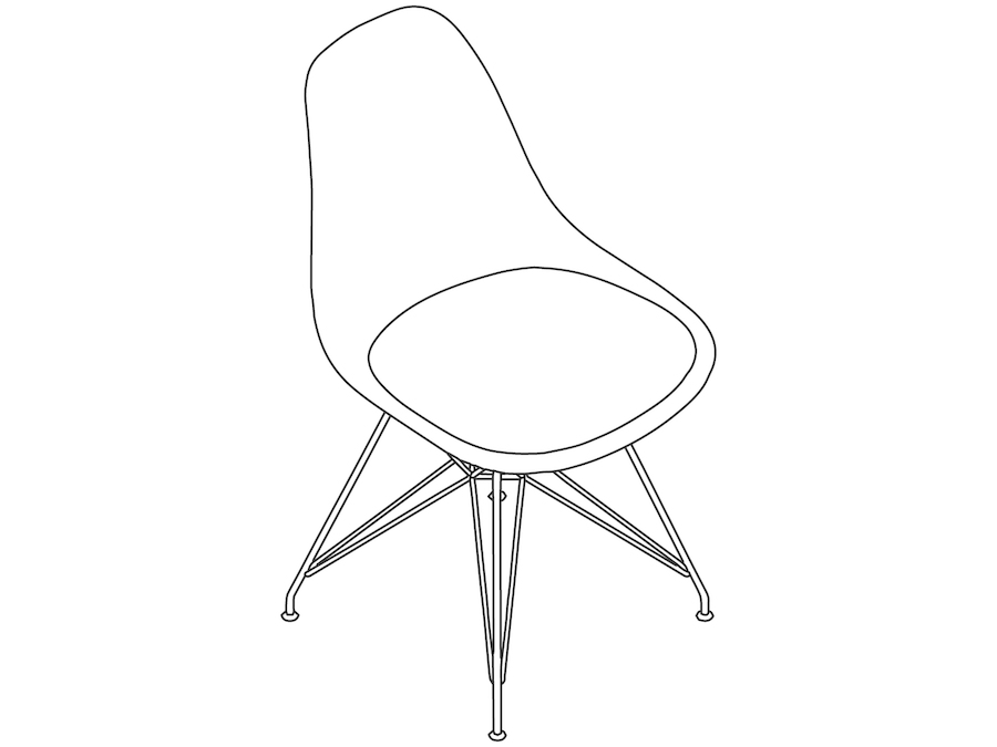 Silla Eames de madera moldeada, con base de alambre, con almohadilla de asiento tapizada