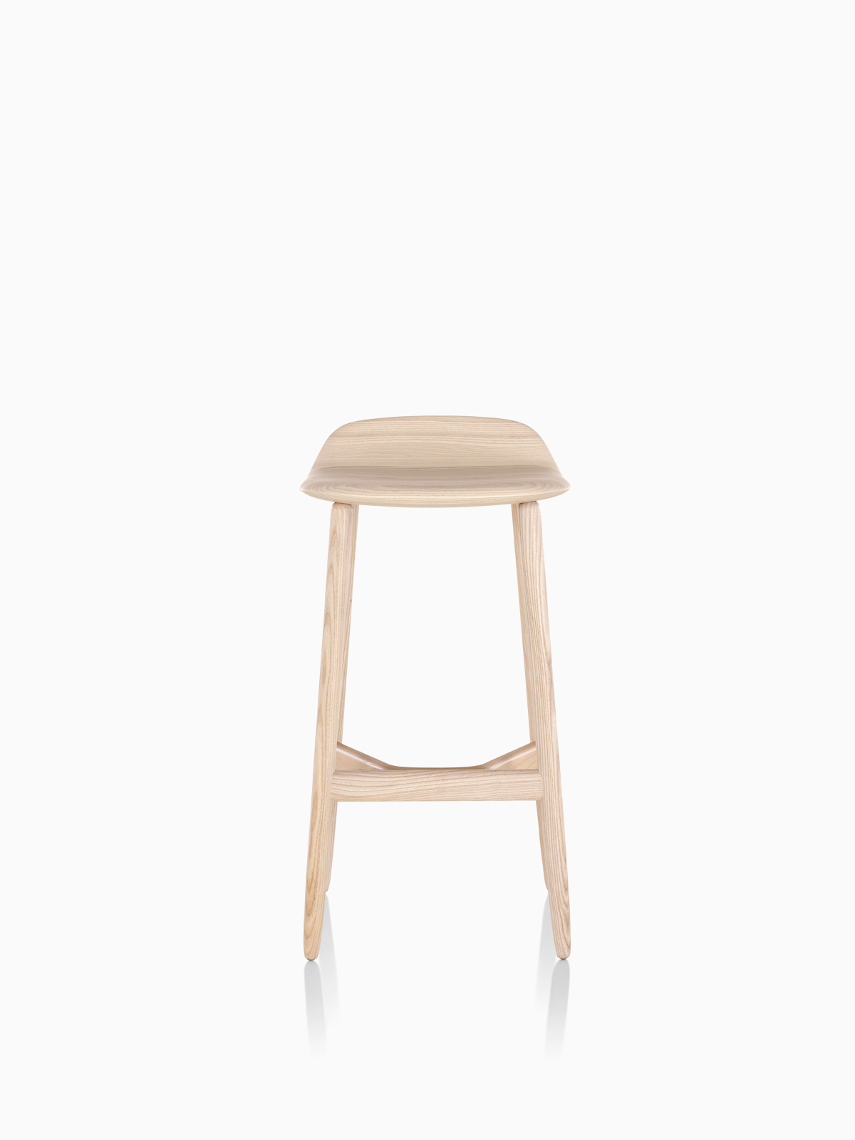 • Vista frontal de un taburete Capelli en acabado de madera clara. Vista en ángulo de un taburete Capelli en acabado de madera clara. Taburete Capelli Carol Catalano