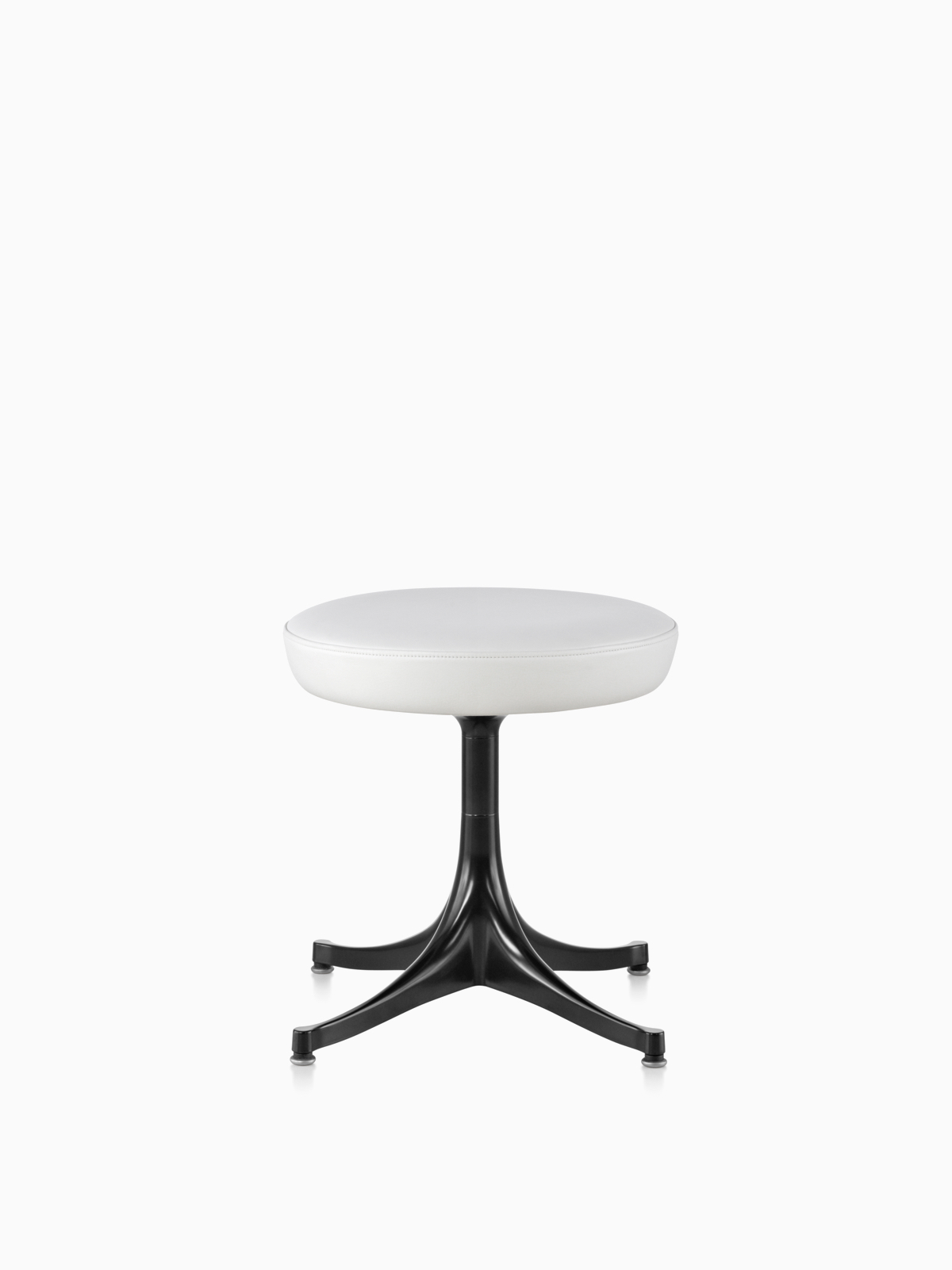 • Taburete de pedestal azul Nelson con base blanca. Taburete de pedestal Nelson de cuero blanco con base negra. Seleccione para ir a la página del producto Stool del pedestal Nelson. Taburete con pedestal Nelson George Nelson