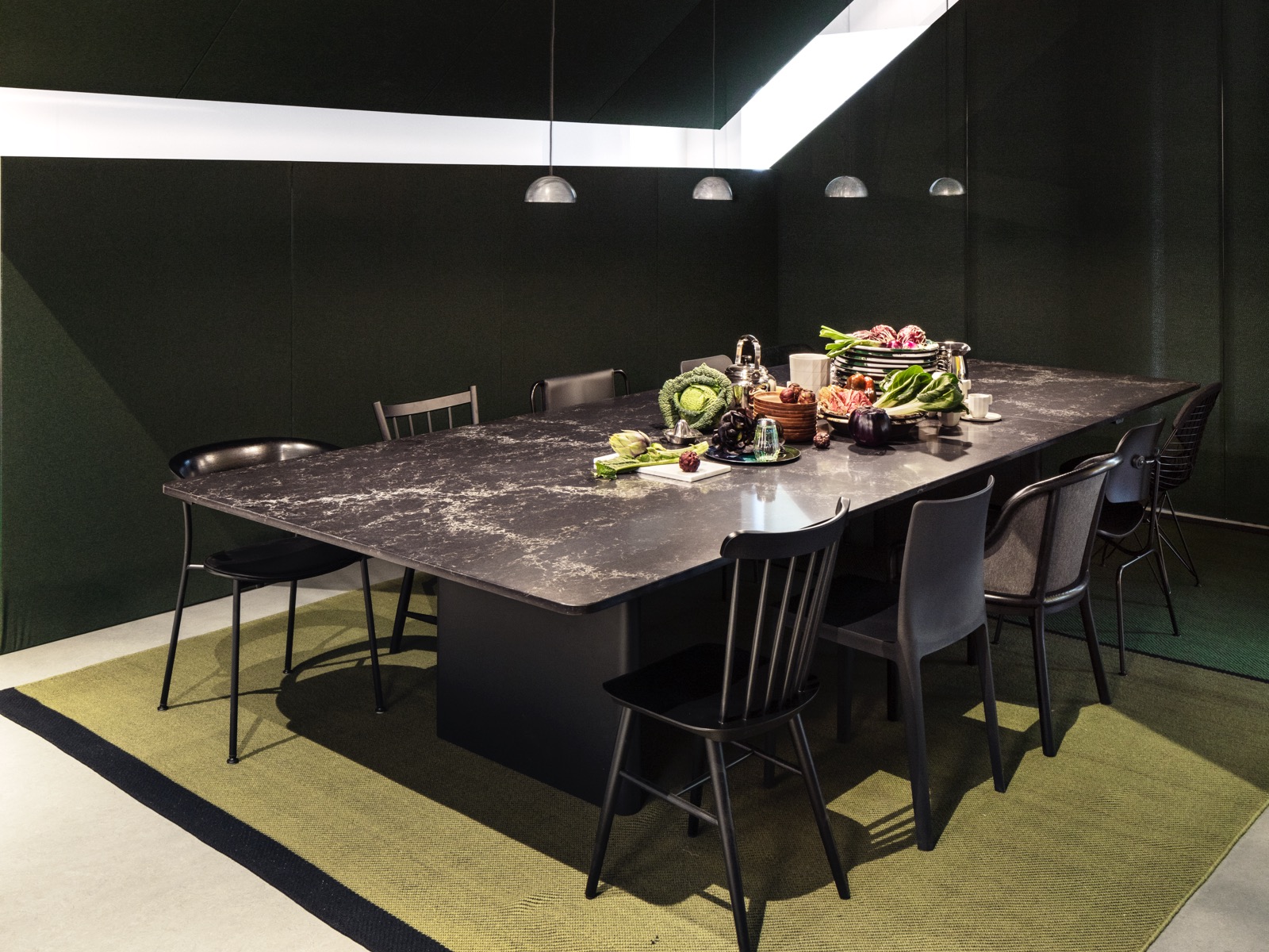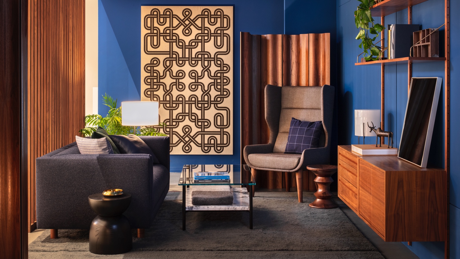 En ten slotte moeten we bij een gesprek over grafisch design bij Herman Miller ook Alexander Girard noemen, oprichter en directeur van de textieldivisie van het bedrijf. In zijn hele carrière gebruikte Girard graphics om betekenisvolle motieven te creëren en zijn vormentaal bereikte een hoogtepunt in de vroege jaren 70 met de serie Environmental Enrichment Panels - een keuze hieruit wordt getoond op de expositie in de showroom in Milaan.