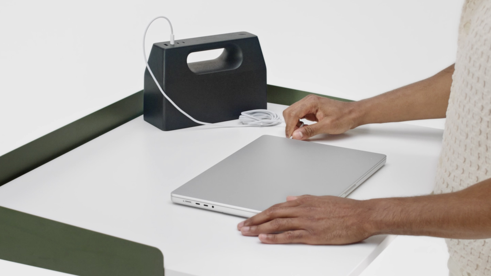 Power small electronic devices anywhere you work, including communal tables or couches in the middle of a room, with the OE1 Power Pack and Power Tray. This mobile battery has three USB-C ports, one USB-A port, and a tracking device holder for easier facility management.