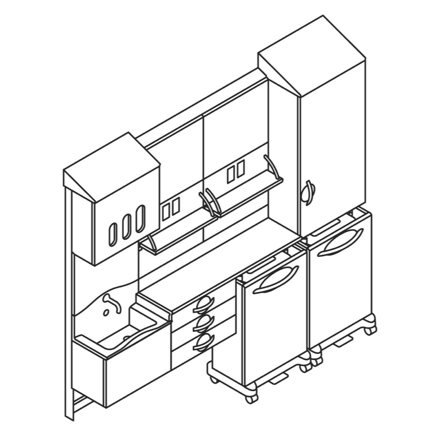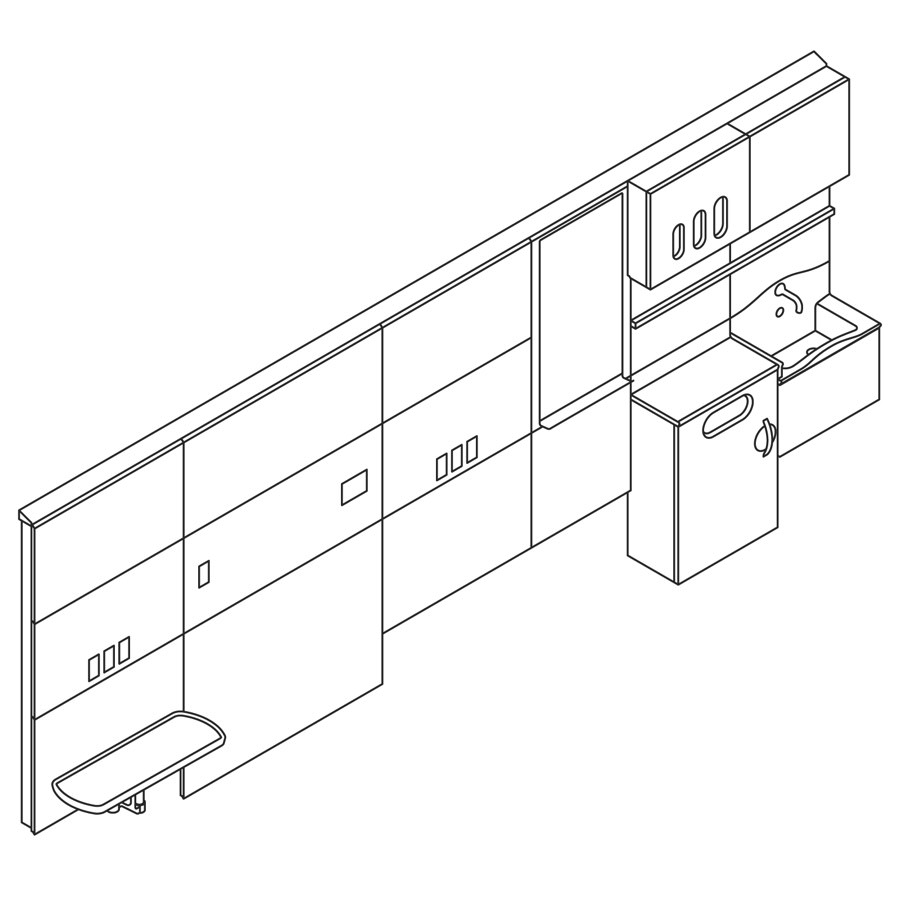 Line art drawing of Compass casework caregiver work wall.