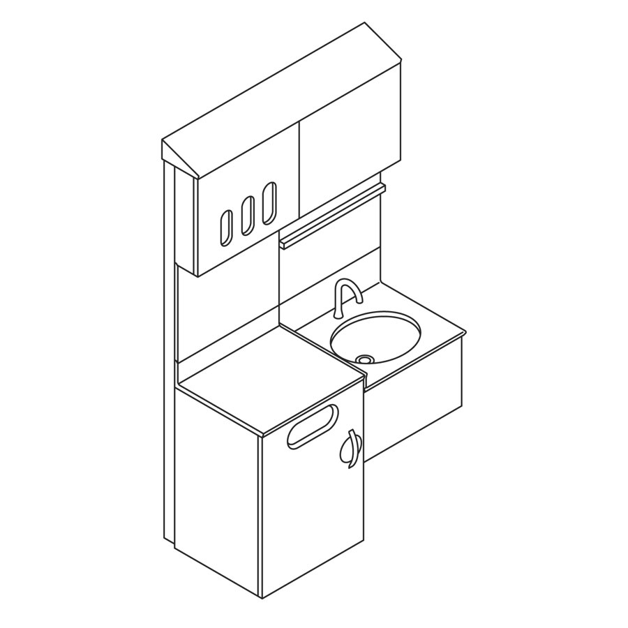 Compass casework wall unit in an elm wood finish with white ADA sink and surface.