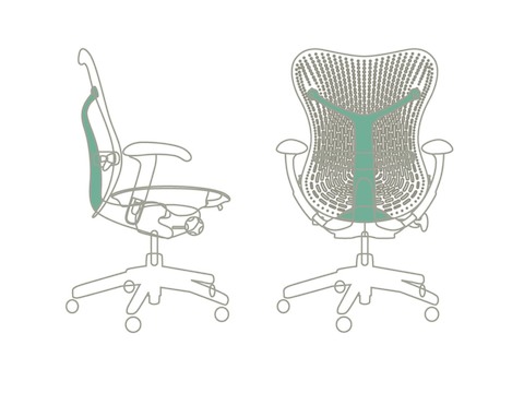 The entire torso of the person sitting in Mirra 2 is considered, from the natural flexibility in the upper back for reach and movement to flexibility in the lumbar area for fit and, finally, to stability in the pelvic region to promote more healthful postures.