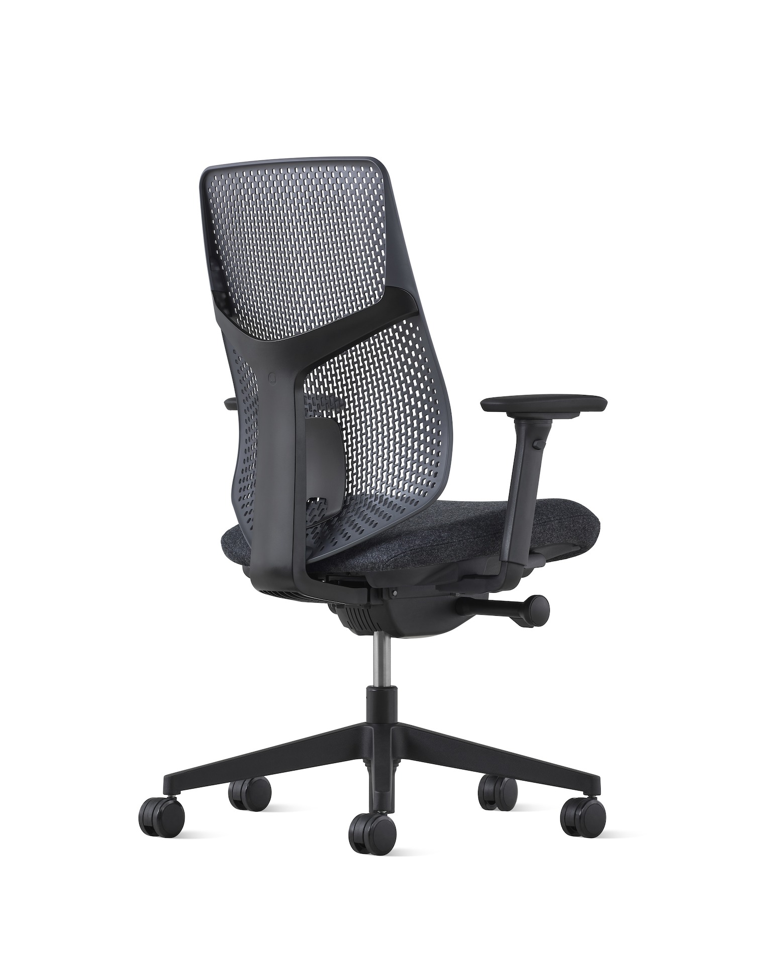 A black Verus Chair with Triflex back viewed from the back at an angle.