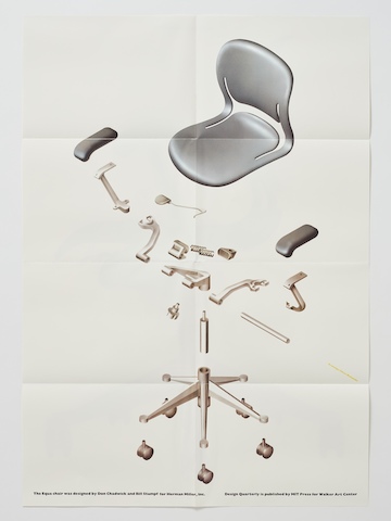 In 1984, the Walker Art Center in Minneapolis put on the show A Serious Chair and included this poster of Stumpf and Chadwick’s Equa Chair in its publication Design Quarterly.