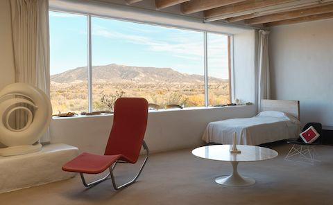 “She had a sustained interest in furniture that was functional and attractive,” says Bonnie Steward, Assistant Librarian at the Georgia O'Keeffe Museum. “She was very practical and wanted things that would last.” She owned several Eames designs, including the Eames LCW, and she was pleased when they gave her a prototype of one of their chair designs—so much so that she asked for (and received) a second. Girard also gave O’Keeffe some of his spirited textile designs, which she made into pillows. Both enjoyed experimenting with color, pattern, and texture in their work and in their homes.