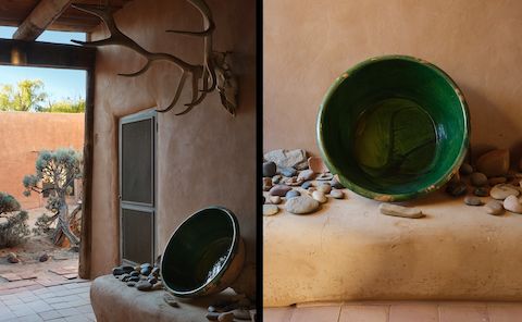 Girard informally worked with O’Keeffe on the interiors and furnishings of her now-iconic Abiquiú home, bringing in midcentury modern designers, including Girard’s great friends and collaborators, Charles and Ray Eames. O’Keeffe appreciated the Eameses’ innovative and sensible designs, which matched O’Keeffe’s own aesthetic sensibilities.