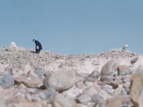 Georgia O’Keeffe (R) “rock fishing” with Ray Eames in New Mexico. Photograph by Charles Eames, 1953. © Eames Office, LLC. All rights reserved.